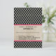 Cartão de Resposta de Casamento de Quatrefoil Chic, elegante e moderno, com um fundo de padrão mórcico de tendência, um papel vintage parece fundo e um par de listras magenta finas. Este cartão RSVP de na moda é fácil de personalizar com os detalhes do seu casamento. Clique em "Personalizar" para encontrar mais opções de personalização.