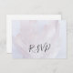 Personalize a placa de resposta RSVP de Lavanda de Cristalação de Luz bonito com a data de resposta específica do casamento. Esta elegante placa eetérea de casamento r.s.v.p. personalizada apresenta uma fotografia aproximada de uma amostra de geode mineral druz de quartzo branco com uma tonalidade pálida púrpura adicionada e um fundo branco. O quartzo claro também é conhecido como o "curandeiro mestre" e "pedra do poder" e é dito que amplifica qualquer energia ou intenção e faz um aprimoramento ou adição únicos à sua decoração de casamento.