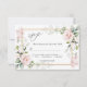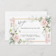 Cartão de Resposta de Casamento com uma ilustração de cor d'água de rosas brancas belíssimas rosadas com folhagem verde em estilo aquoso. O texto "rsvp" é escrito em uma fonte de script.