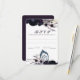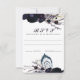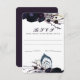 Cartão RSVP de casamento elegante ilustrado com flores desenhadas à mão em tons profundos de azul roxo e marinho. Penas, folhas e galhos, azuis e verdes, de cor aquosa, pintados à mão. Tipografia moderna. Ideal para o casamento no outono ou no inverno. As cores principais são roxo, roxo escuro, azul, preto e azul escuro. Estilo de fonte sofisticado manuscrito, com tipografia clássica. Armário de entrega de casamento. Alguns elementos, por CreateTheCut.com. ***OBSERVE que, se você alterar a fonte ou o tamanho da fonte, ela pode alterar a forma como o seu convite impressão. Ele vai impressão como você vê no seu monitor. Não verei seu cartão assim que você o solicitar, e o Zazzle NÃO editará nada (digitar, alinhamento, etc.). Mostrado aqui em papel básico