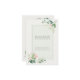 Esta placa RSVP apresenta uma delicada borda floral de aquarela em tons verdes e cor-de-rosa suaves, moldando um layout de resposta refinado. A tipografia graciosa e a paleta calma tornam-na perfeita para temas de jardim, primavera ou casamento elegantes. O lado inverso inclui um limite de RSVP claro e uma seção de endereço de devolução.