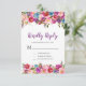 Lindas flores roxas e cor-de-rosa, com uma pitada de azul criam lindas bordas florais ao longo de cima e de baixo deste cartão RSVP. A gentileza de responder é escrita em letras grandes de script roxo. O fundo do convite é um roxo profundo. Isto pode ser mudado para qualquer cor para corresponder à sua decoração de casamento. A cor, o tamanho e a fonte do texto também podem ser personalizados.