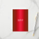 Placa de resposta RSVP frente vermelha com parte traseira branca. Personalize com seus próprios detalhes.