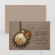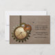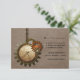Este Cartão de Resposta de Casamento de Relógio Vintage em mocha marrom apresenta relógios e engrenagens antiquados de galhardetes íntimos pendurados por uma corrente de metal. O fundo tem uma cobertura texturizada de papel e malha que adiciona uma sensação de aflição e ressonância ao design. Esta carta RSVP de casamento, esquisita e ofuscada, seria perfeita para um casamento inspirado em steampunk. Fácil de personalizar, basta adicionar os detalhes do casamento nos espaços fornecidos. Clique no botão "Personalizar a TI" para encontrar opções adicionais de personalização.