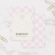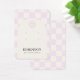 Placa de exibição com um padrão de verificação lilás fofo. Os orifícios de modelo podem ser ajustados ou excluídos, bem como todas as informações de sua empresa. Adicione sua mídia social ou site à parte inferior.