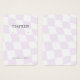 Placa de exibição com um padrão de verificação lilás fofo. Os orifícios de modelo podem ser ajustados ou excluídos, bem como todas as informações de sua empresa. Adicione sua mídia social ou site à parte inferior.