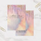 Esta placa de exibição de colar giro e glamourosa é a maneira perfeita de estilizar sua embalagem e adicionar seu próprio talento e personalidade pessoais. Ele retrata gotas de brilho, bonito, únicas e luxuosas falhas impressas a cores brilhantes do arco-íris sobre um fundo holográfico iridescente de película. A tipografia é uma elegante escrita cursiva com uma fonte serif moderna a corresponder. O esquema de cores inclui rosa, pêssego, azul, roxo, ouro e coral. No verso, ele inclui informações de contato que podem ser completamente alteradas ou personalizadas para seus detalhes. É uma forma profissional, elegante e na moda para mostrar seu produto com orgulho. (as linhas de colar são apenas marcadores impressos, o corte deve ser concluído pelo cliente) **As placas de exibição de brinco de correspondência estão disponíveis. Contato do designer. ***NOTA DE DESIGN IMPORTANTE: Para qualquer solicitação de design personalizada, como solicitações de correspondência de produtos, alterações de cor, mudanças de posicionamento ou qualquer outra solicitação de alteração, clique no botão "CONTACT" ou envie um e-mail ao designer diretamente em lafemme.art@gmail.com. Você pode até enviar um e-mail para ela solicitando um design completamente personalizado e novo.