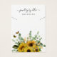 Uma bela placa de vídeo de colar de joias com marcadores que você pode mover ou excluir. Projetado com girassol amarelo-aquarela e folhagem de eucalito, minúsculos confetti de coração de ouro e borboletas. Seu nome está no estilo de letra de texto e todo texto é personalizável. Há a opção de adicionar seu próprio logotipo ao contrário, juntamente com os detalhes de sua empresa.