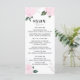 Cartão de menu elegante e feminino com rosas cor d'água cor-de-rosa. Este cartão é perfeito para casamentos de primavera e jardim. Itens correspondentes estão disponíveis.
