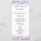 Um belo cartão de lavanda botânico floral. Adicione a ordem da cerimônia e seus nomes na frente. Lá atrás há espaço para os nomes das festas de Bridal.