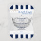 Criado em um estilo listrado impressionante para uma nova configuração divertida para o seu evento de concurso ou almoço. Mostrado em listras azuis e brancas clássicas, na frente e atrás, é branco em papel de qualidade fina, este programa/cartão de menu tem uma grande coroa prateada de quatro pontos no centro. Texto escrito sobre a coroa. Extremidade com suporte de rico. Nós criamos a modelo para você, simplesmente mude a informação para a sua, no lado direito da tela, no menu de seleção. Personalize ainda mais se desejar alterando a seleção do papel, as cores do texto ou do texto, as cores de fundo, os estilos de texto ou carregando sua própria imagem. Escolha encantadora para recepções, festas de aposentadoria, festas de concurso, bolas, almoços, eventos, casamentos ou eventos veteranos.