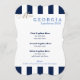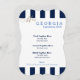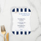 Criado em um estilo listrado impressionante para uma nova configuração divertida para o seu evento de concurso ou almoço. Mostrado em listras Marinhos azuis e brancas clássicas na frente e atrás é branco em papel de qualidade fina. Texto escrito na área central. Extremidade com suporte de rico. Nós criamos a modelo para você, simplesmente mude a informação para a sua, no lado direito da tela, no menu de seleção. Personalize ainda mais se desejar alterando a seleção do papel, as cores do texto ou do texto, as cores de fundo, os estilos de texto ou carregando sua própria imagem. Escolha encantadora para recepções, festas de aposentadoria, festas de concurso, bolas, almoços, eventos, casamentos ou eventos veteranos.
