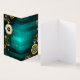 Joias, relógio de ouro com uma corrente de ouro e teclas num fundo textural verde. Estilo Steampunk.
