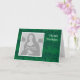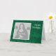 Um quadro quadrado branco atraente, pronto para sua foto, em um fundo floral verde padronizado. Feliz Aniversário escrito na frente e dentro. (As saudações neste cartão podem ser personalizadas).