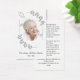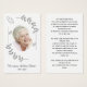 Uma fotografia do seu amado é mostrada nesta elegante carta de oração. Um quadro botânico simples do Boho envolve a pessoa morta. O nome e as datas de vida da pessoa falecida são escritos abaixo. Há espaço nas costas para um verso favorito, oração, salmo ou lembrança.