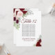 Estas belas cartas facilitarão aos seus convidados de casamento encontrar as suas mesas na sua recepção. O design bócio rústico apresenta rosas de aquarelas pintadas manualmente em tons de burgundy, vermelho e rosa-pincel, com folhas de eucalipto e verde de jardim. O cartão exibe o número da tabela, bem como o quadro de assentos ou a lista de até 10 nomes, com os nomes do casal e a data do casamento abaixo. Esta placa foi projetada em uma placa de 5 x 7 polegadas, mas pode ser personalizada para atender às suas necessidades. Perfeito para criar o seu próprio mostrador de assentos!