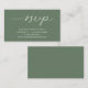 Apresentando nossa placa RSVP de Casamento de Elegância Moderna - a combinação perfeita de sofisticação e simplicidade em verde de sábio. Projetada para o casal contemporâneo, esta placa RSVP apresenta um roteiro limpo e minimalista e um toque sutil de luxo para confirmar a presença de seus convidados. O elegante design complementa o tema do casamento cor-de-rosa rosa, adicionando um toque de classe à sua suíte de papelaria. Assegure-se de que seu dia especial seja meticulosamente planejado com nosso elegante cartão RSVP moderno - um eterno de manutenção para você e seus convidados. Projetado por TeeshaDerrick