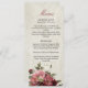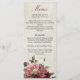 Este menu equilibra elegância e variedade, oferecendo aos hóspedes uma experiência de jantar refinada com opções personalizáveis para atender às necessidades dietéticas. Ele foi projetado para combinar lindamente com a estética floral da sua placa de menu Burgundy Buquê.