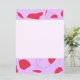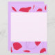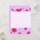 Este cartão apresenta flores vermelhas curvy movendo-se ao redor de suas bordas superior e inferior, sobre um fundo lilático.