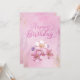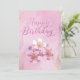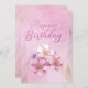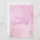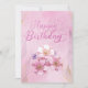 Cartão de saudação simples personalizado com "Feliz Aniversário" em tipografia de escrita com brilho rosa, com fundo de aquarela rosa e flores elegantes. Correspondência com o brilho rosa "Parabéns" no centro.