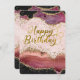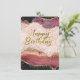 Este cartão de aniversário reluzente apresenta elegante pedra agata em tons de rosa e preto com brilho festivo de ouro e "Feliz Aniversário" na tipografia de rodado dourado.