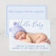 Anuncie a chegada do seu pacote especial de alegria com este excelente "Olá, Bebê" em escrita azul e tipografia roxa com fundo azul suave. Adicione a foto do bebê, o nome, as estatísticas na frente e inclua uma mensagem no verso ou deixe o vazio e escreva uma mensagem pessoal mais tarde. Não específico do sexo. Lindas cores para o menino ou para a menina. As cores da fonte podem ser alteradas - vá para personalizar ainda mais. Envie-me um e-mail se precisar de ajuda para fazer mais do que você ou para ajudar a se adequar à sua foto. designsbykatz@gmail.com