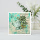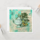 Colagem bonito apresenta a ilustração do bule de chá em tons de menta com folhagem e borboleta verde sobre o fundo da efêmera angustiada do aqua pastel