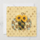 Belo cartão decorativo de outono, sazonal com vibrações retrô-vintage! Apresenta cores de outono, padrão de diamante de ouro e abóbora decorada com girassol adorável.