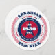 Um design ousado e patriótico, com vermelho, branco e azul, evoca sentimentos de liberdade, lealdade e unidade. O nome do estado, "Arkansas", é exibido de forma destacada, cercado por informações sobre a capital, residentes, região, fuso-horário e coordenadas geográficas. A parte traseira é vazio - deixe-o como está ou adicione seu texto acessando a ferramenta design. Perfeito para feriados nacionais e eventos patrióticos.