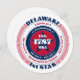 Um design ousado e patriótico, com vermelho, branco e azul, evoca sentimentos de liberdade, lealdade e unidade. O nome do estado, "Delaware", é exibido com destaque, cercado por informações sobre a capital, residentes, região, fuso horário e coordenadas geográficas. A parte traseira é vazio - deixe como está ou adicione seu texto acessando a ferramenta design. Perfeito para feriados nacionais e eventos patrióticos.