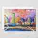 Qualquer um adoraria receber este cartão com uma ilustração aquática da linha do horizonte de Dallas Texas! A parte traseira desta placa plana é vazio para que você possa escrever uma mensagem para seu destinatário!
