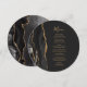 A borda esquerda deste menu de casamento moderno e elegante apresenta uma borda de ágata em aquarela preta aparada com brilho dourado falso. O texto personalizável combina fontes de escrita à mão caprichosas douradas e fontes copperplate em um fundo preto de ardósia. O verso apresenta um design de ágata preto e dourado correspondente.