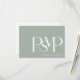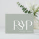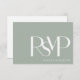 Os simples cartões de resposta RSVP de 5 pol x 3,5 pol de casamento apresentam a palavra, RSVP em letras grandes de abstrato em branco em sábado empoeirado. A parte traseira tem espaços reservados com linhas para o convidado preencher seu nome e selecionar sua escolha para participar.