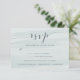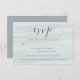 A nossa placa RSVP Chiffon verde e cinza apresenta um fundo de lavagem a cores aquáticas em tons absolutos de verde-cerâmico em forma aqua, acentuado com caligrafia cônica e letra serif em ardósia. Personalize com a data de RSVP desejada, com o texto de aceitação/recusa personalizado e com as opções de entrada a serem escolhidas pelos convidados. Projetado para coordenar com nossa suíte de convite de casamento Chiffon no Mar.