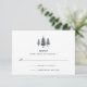 O cartão RSVP branco e nítido combina com nossos convites para o casamento e evento da Floresta de Inverno, e apresenta pinheiros silenciados em marinhos enfumaçados e cinzas azuis. Personalize com a data de RSVP desejada.