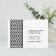 Cartão de Resposta de Casamento de Fronteira Chevron e Chevron moderno com uma simples borda padrão Chevron em preto e branco. Esta design de na moda vai dar o tom para um casamento elegante. Fácil de personalizar, basta adicionar os detalhes do casamento nos campos de texto fornecidos. Clique em "Personalizar" para encontrar mais opções de personalização.