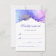 Uma tinta moderna lavou o cartão RSVP de casamento com violeta, rosa, roxo, azul e prata. Este elegante cartão de cervejaria de casamento apresenta uma lavagem artística de tintas em tom de joia em ametista e safira; acentuada com prata. Adicione facilmente sua data de RSVP ao modelo usando a ferramenta de personalização do Zazzle. Entre em contato conosco se precisar de assistência via Zazzle Chat. Placa RSVP de Casamento de Abstrato Rosa Violeta.