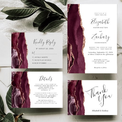 Burgundy Rose Gold Agate Script Wedding SuiteCriado por Akhates Designs