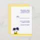 O cartão de RSVP moderno é perfeito para um casamento na praia. Apresenta duas palmeiras em azul marinho com um pôr do sol amarelo no fundo e listras amarelas no fundo. Excelente para um evento com tema oceânico, mar ou praia. Design limpa e elegante com um olhar contemporâneo. ENTRE EM CONTATO COM O MARLENEDESIGNER SE NECESSITAR DE UMA ALTERAÇÃO DE COR OU DE FORMULÁRIO