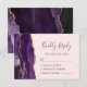 A borda esquerda deste elegante cartão de cercado RSVP de casamento moderno apresenta uma borda de agitação de cor d'água roxa, aparada com falso brilho dourado. O título "Resposta gentil" aparece no script de escrita manual, com texto personalizável abaixo na fonte da placa de reprodução da cinza de carvão em um fundo rosa-claro. O verso apresenta um design de agate roxo e dourado correspondente.