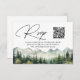 Um cartão RSVP de Casamento elegante com montanhas de aquarela e pinheiros que você pode personalizar com seu texto.