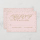 Brilhante dourado, minúsculas estrelas brilham em nuvens de confete ao redor da borda deste belo bebê rosa e dourado Quinceañera Invitation, com um guião de efeito de brilho dourado que lê, "Mis Quince Años". Perfeito para uma festa de rico! Arte original de Colleen Michele. Por favor, note que não há um verdadeiro efeito de brilho dourado ou folha de ouro nas estrelas e no script; não será usado nenhum brilho real, folha de ouro ou tinta metálica neste convite.Pequenas, estrelas de ouro brilhante brilham em nuvens de confete ao redor da borda deste lindo cartão de resposta cor-de-rosa pálido e dourado, com um script de efeito de brilho dourado, "RSVP". Rico, chic e encantador de uma só vez. Perfeito para um caso fabuloso. Arte original de Colleen Michele. Por favor, note-se que não existe um verdadeiro efeito de brilho de ouro ou de folha de ouro nas estrelas e no guião; não será utilizada qualquer brilho, folha de ouro ou tinta metálica neste convite.