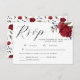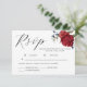 Cartão RSVP de casamento elegante e rústico com ilustração aquosa de marinho e flor de peônias de burlu com verde. O cartão também inclui opções de refeição para os convidados a selecionar.