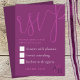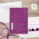 Esta elegante carta RSVP de casamento roxa de morango selvagem é um toque final para o seu papel de carta de casamento. Personalize-o facilmente para o seu evento. Um belo título de caligrafia pode ser mudado para suíte uma variedade de papéis de carta de casamento.