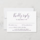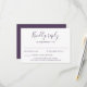 A placa de gabinete RSVP de convite de casamento apresenta um design tipográfico elegante, moderno e limpo com um esquema de cor roxa. Este cartão de resposta está pronto para ser personalizado com os detalhes do seu dia especial.