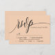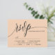 Deixe seu amor florescer com um toque de simplicidade elegante. Esta placa RSVP de pêssego suave apresenta uma fonte moderna de escrita de caligrafia, adicionando um toque de graça de eterno à sua papelaria de casamento. O design minimalista mantém o foco nos detalhes de RSVP, garantindo uma resposta clara e na moda dos seus convidados. Complementando perfeitamente o seu tema de casamento minimalista, esta versátil carta RSVP se mistura facilmente com estética romântica, chica, moderna ou sofisticada. Personalize-o com seus nomes e detalhes de casamento para criar um pacote de resposta coesa para seu dia especial.