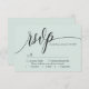 Deixe seu amor florescer com um toque de simplicidade elegante. Este cartão verde de RSVP verde de menta pastel apresenta uma fonte moderna de escrita de caligrafia, adicionando um toque de graça de eterno à sua papelaria de casamento. O design minimalista mantém o foco nos detalhes de RSVP, garantindo uma resposta clara e na moda dos seus convidados. Complementando perfeitamente o seu tema de casamento minimalista, esta versátil carta RSVP se mistura facilmente com estética romântica, chica, moderna ou sofisticada. Personalize-o com seus nomes e detalhes de casamento para criar um pacote de resposta coesa para seu dia especial.