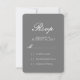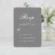 Este simples mas clássico cartão de resposta rsvp de casamento apresenta uma combinação elegante de fontes em um fundo de cinza de carvão. Esta design é eterno e funcionará com qualquer tema de casamento. Personalize a cor de fundo para corresponder às cores do casamento.