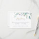 Cartões de RSVP de casamento impressos por barato com cores aquáticas simples. Personalize a design com suas informações de RSVP de casamento. Use as ferramentas de design para personalizar o texto, escolha qualquer cor de fundo e edite as fontes e cores para criar seu design de cartão de resposta de casamento exclusivo. O verso apresenta um fundo azul de marinho ou usa o espaço para adicionar texto ou fotos, se necessário. Esta bela design botânica moderna é perfeita para qualquer estação.
