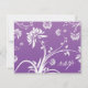 Este cartão de resposta de convite de casamento totalmente personalizável apresenta um fundo branco com um sotaque floral roxo. O sacudir tem um fundo roxo com design floral branco e a sigla "rsvp". Esta é uma carta de resposta adorável para combinar com o nosso Conjunto de Casamentos Florais Roxos. Personalize a fonte ou qualquer outra coisa clicando no botão Personalizar!. ppl001